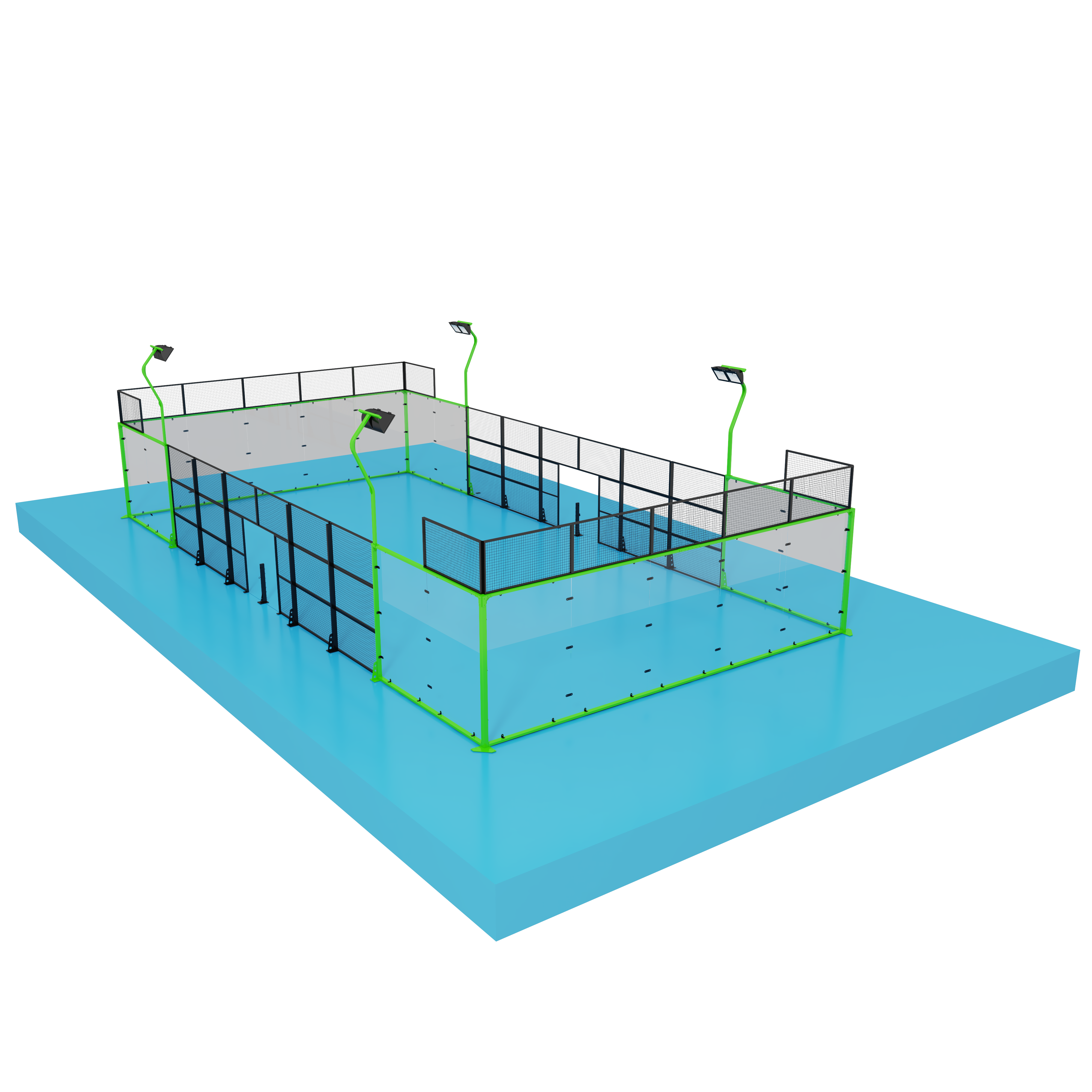 A: We are a one-stop solution provider specializing in the R&D and manufacturing of padel court equipment, with over 10 years of industry experience. We utilize FIP-certified high-strength materials (such as corrosion-resistant steel structures, professional-grade glass, and UV-resistant artificial turf) and possess independently developed full-scale production lines and patented technologies. This ensures full-process control from foundations, fencing, and lighting to supporting facilities, guaranteeing high standards and consistency in project delivery.